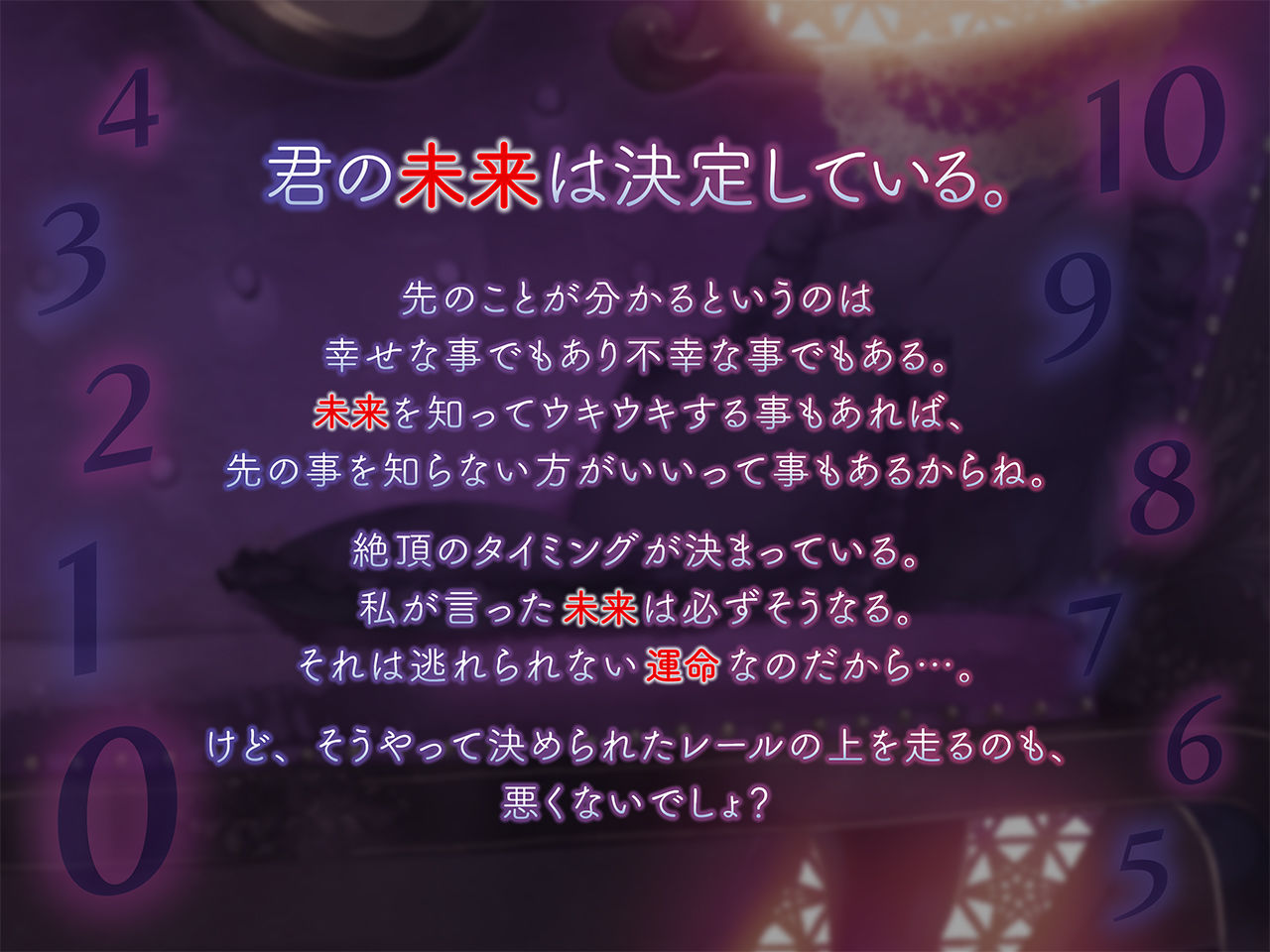 【FANZA】君の未来は決定している。〜未来予知と絶頂カウントダウン〜【無料サンプル画像2枚】 / エロトランス-君の未来は決定している。〜未来予知と絶頂カウントダウン〜:本作について本音声は催○にかかる事を目的として…